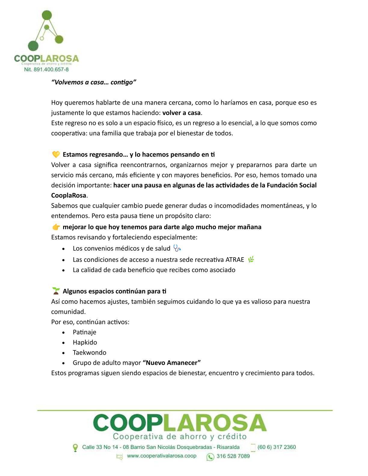 Somos una Cooperativa de ahorro y crédito que contribuye al desarrollo económico, social y cultural de los asociados y sus familias.