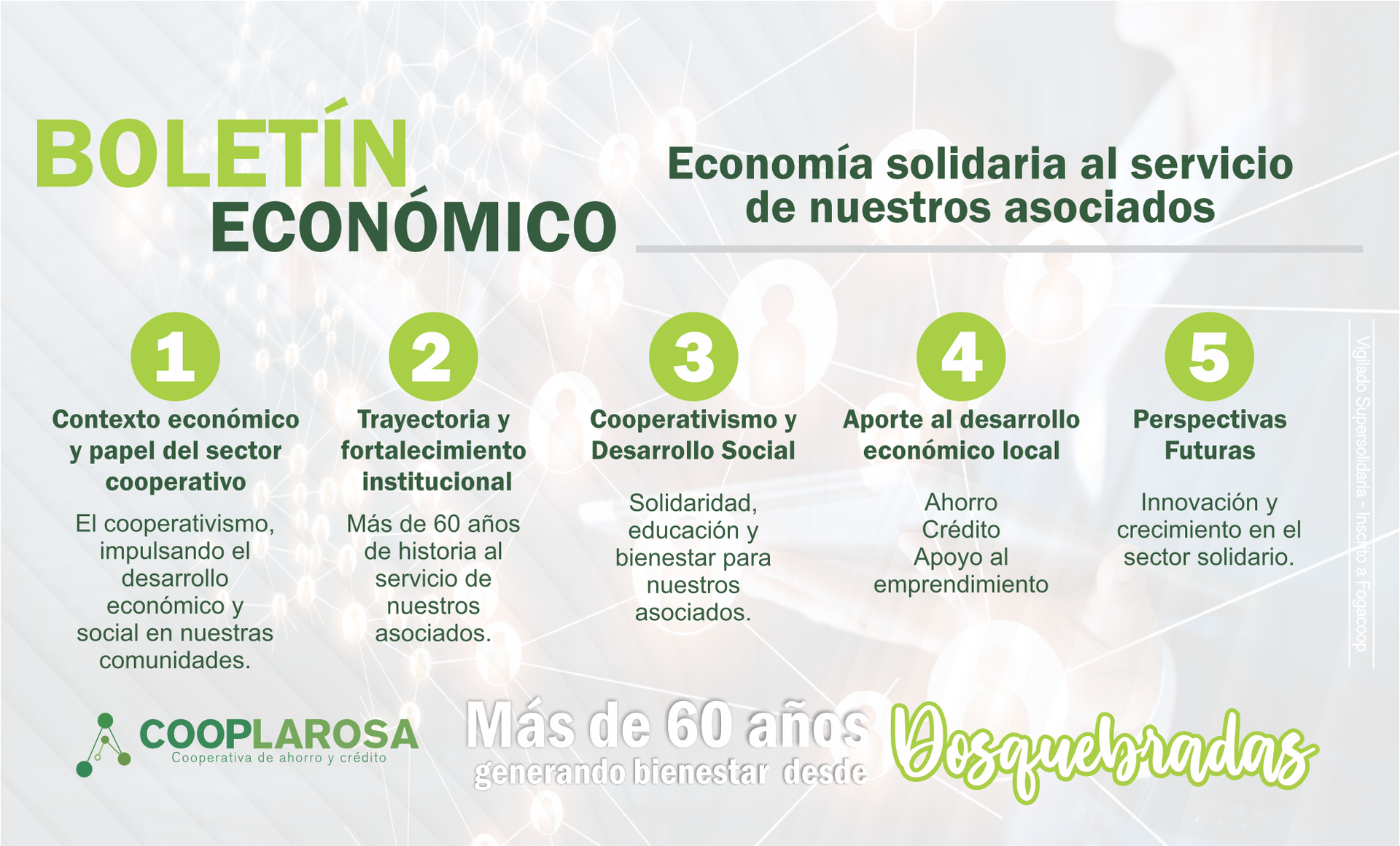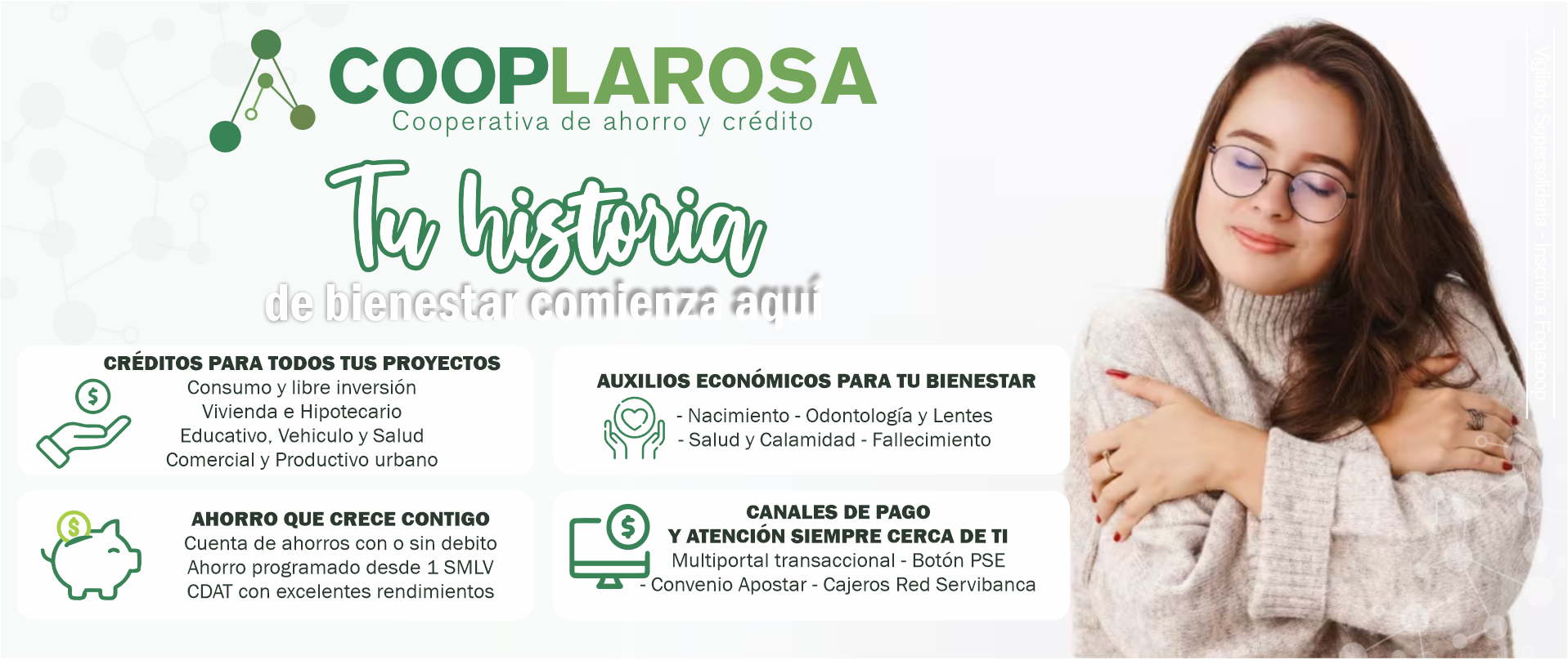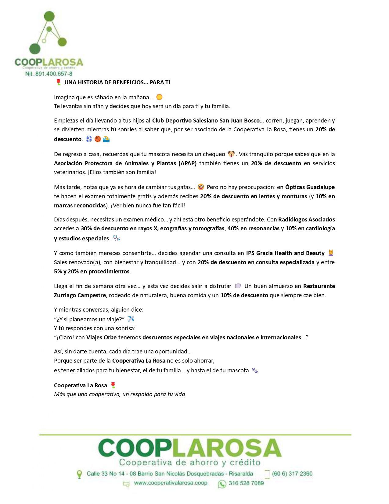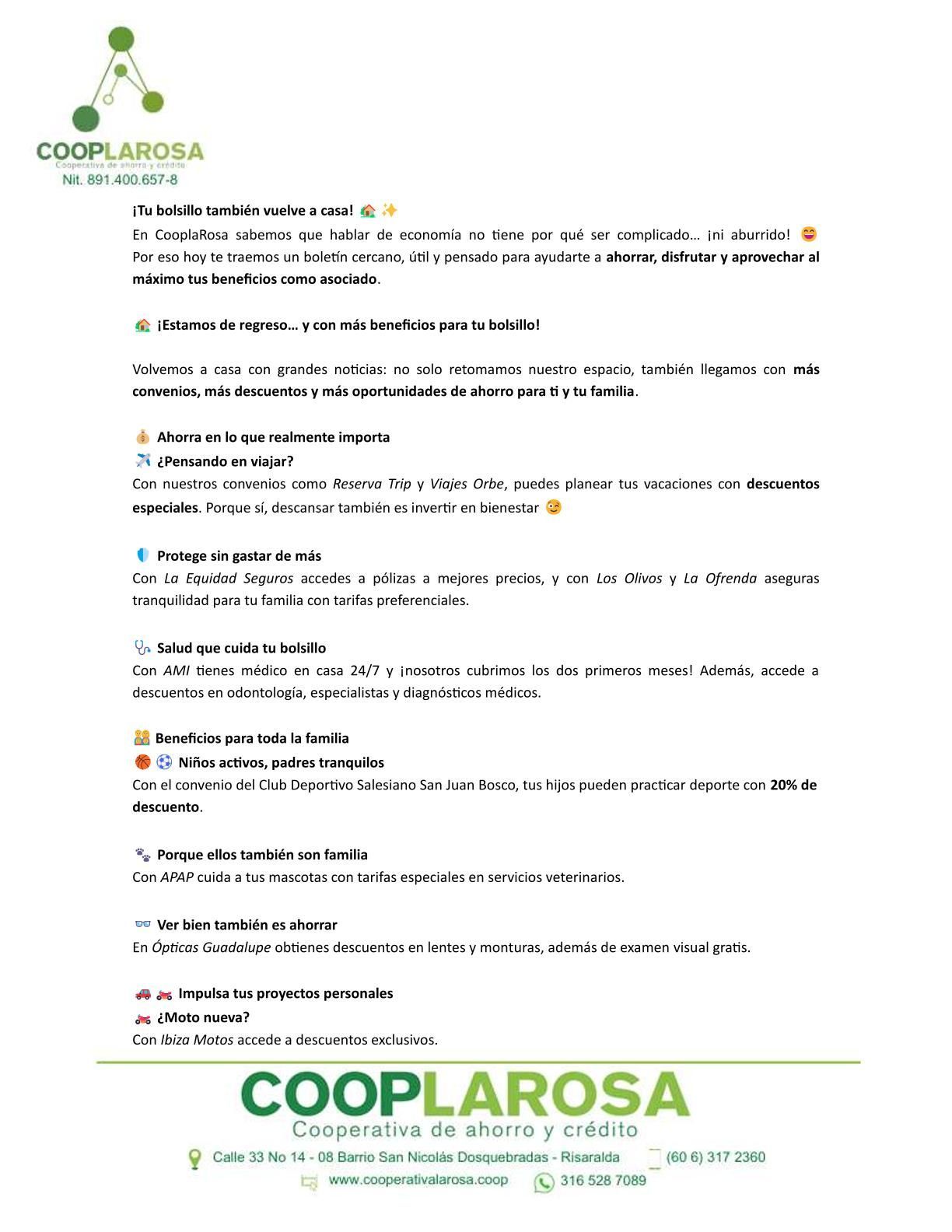 Somos una Cooperativa de ahorro y crédito que contribuye al desarrollo económico, social y cultural de los asociados y sus familias.
